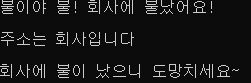 Console.WriteLine("{0}에 불이 났으니 도망치세요~\n", location);
