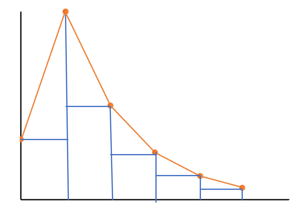 4. 구한 k값과 prevalue값을 이용해 범위의 넓이구해서 are List에 추가하기
